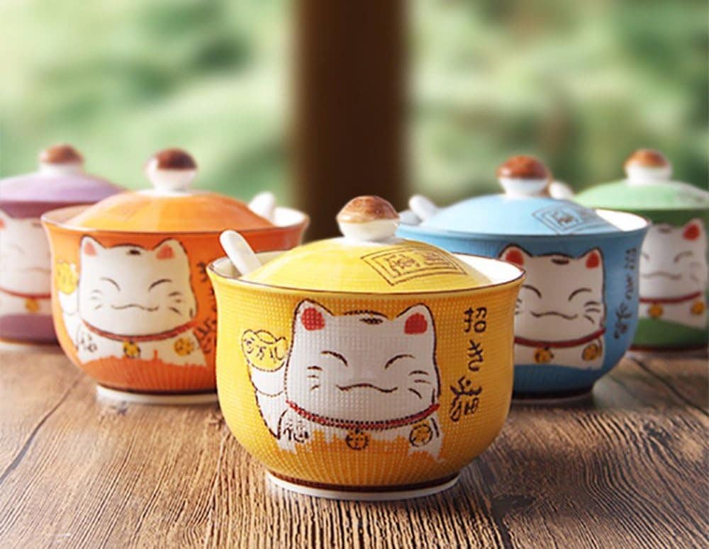 10 reviews for Ceramics Japanese Maneki Neko Lucky Cat Sugar Salt Pepper Storage Jar with Lid And Spoon