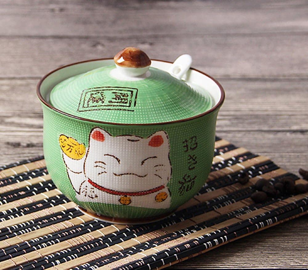 Ceramics Japanese Maneki Neko Lucky Cat Sugar Salt Pepper Storage Jar with Lid And Spoon